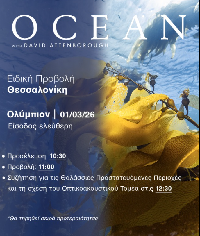 Το ντοκιμαντέρ «Ωκεανός με τον Ντέιβιντ Ατένμπορο» (Ocean with David Attenborough) ταξιδεύει τους θεατές σε ένα συναρπαστικό ταξίδι, δείχνοντας ότι δεν υπάρχει πουθενά πιο ζωτικό για την επιβίωσή μας, πιο γεμάτο ζωή, θαύματα ή εκπλήξεις από τον ωκεανό.