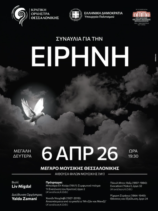 Η Κρατική Ορχήστρα Θεσσαλονίκης παρουσιάζει σε Θεσσαλονίκη και Αθήνα μία συναυλία-προσευχή για την Ειρήνη, με τη μουσική να ενώνει συνθέτες και ερμηνευτές που, δυστυχώς, χωρίζει ο πόλεμος. Η συναυλία στη Θεσσαλονίκη πραγματοποιείται σε συνεργασία με το Μέγαρο Μουσικής Θεσσαλονίκης και στην Αθήνα σε συμπαραγωγή με την Εθνική Λυρική Σκηνή.