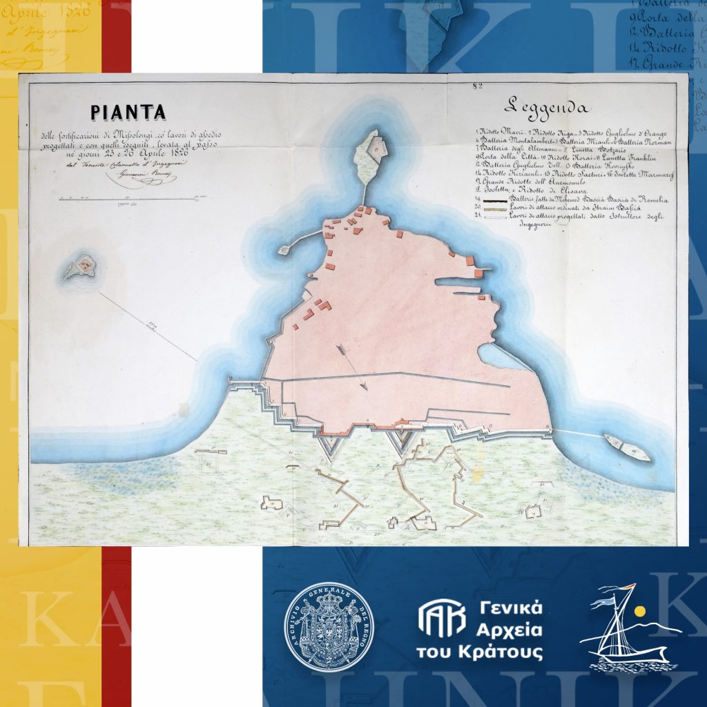 Σχέδιο του Giovanni Romey με τις οχυρώσεις στο Μεσολόγγι το 1826 – Φωτογραφία: kellianos.blogspot/ Γιάννης Κορίνθιος