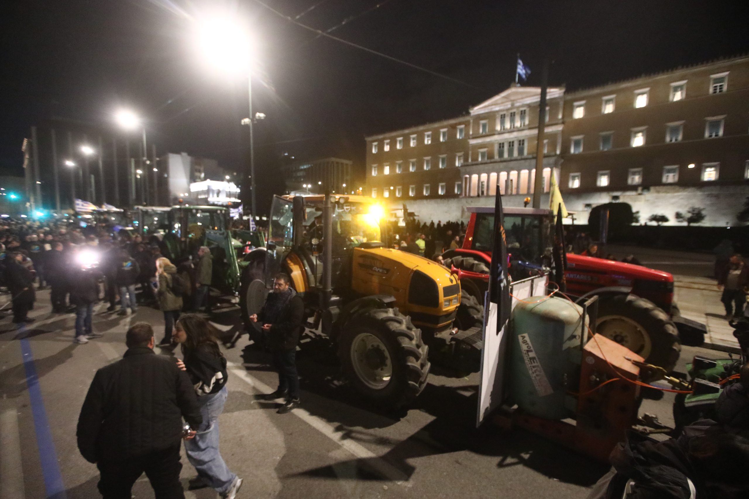 Στο Σύνταγμα διανυκτερεύουν οι αγρότες με τα τρακτέρ – Διαμηνύουν ότι ο «αγώνας θα συνεχιστεί»
