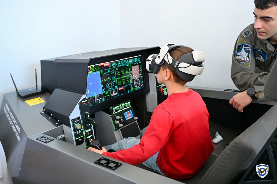 Παιδιά και νέοι έχουν τη δυνατότητα να γνωρίσουν από κοντά την Πολεμική Αεροπορία, δοκιμάζοντας προσομοιωτές και εφαρμογές εικονικής πραγματικότητας (VR), που αναπαριστούν το περιβάλλον και τις διαδικασίες μιας αποστολής, τονίζεται στην ανακοίνωση.