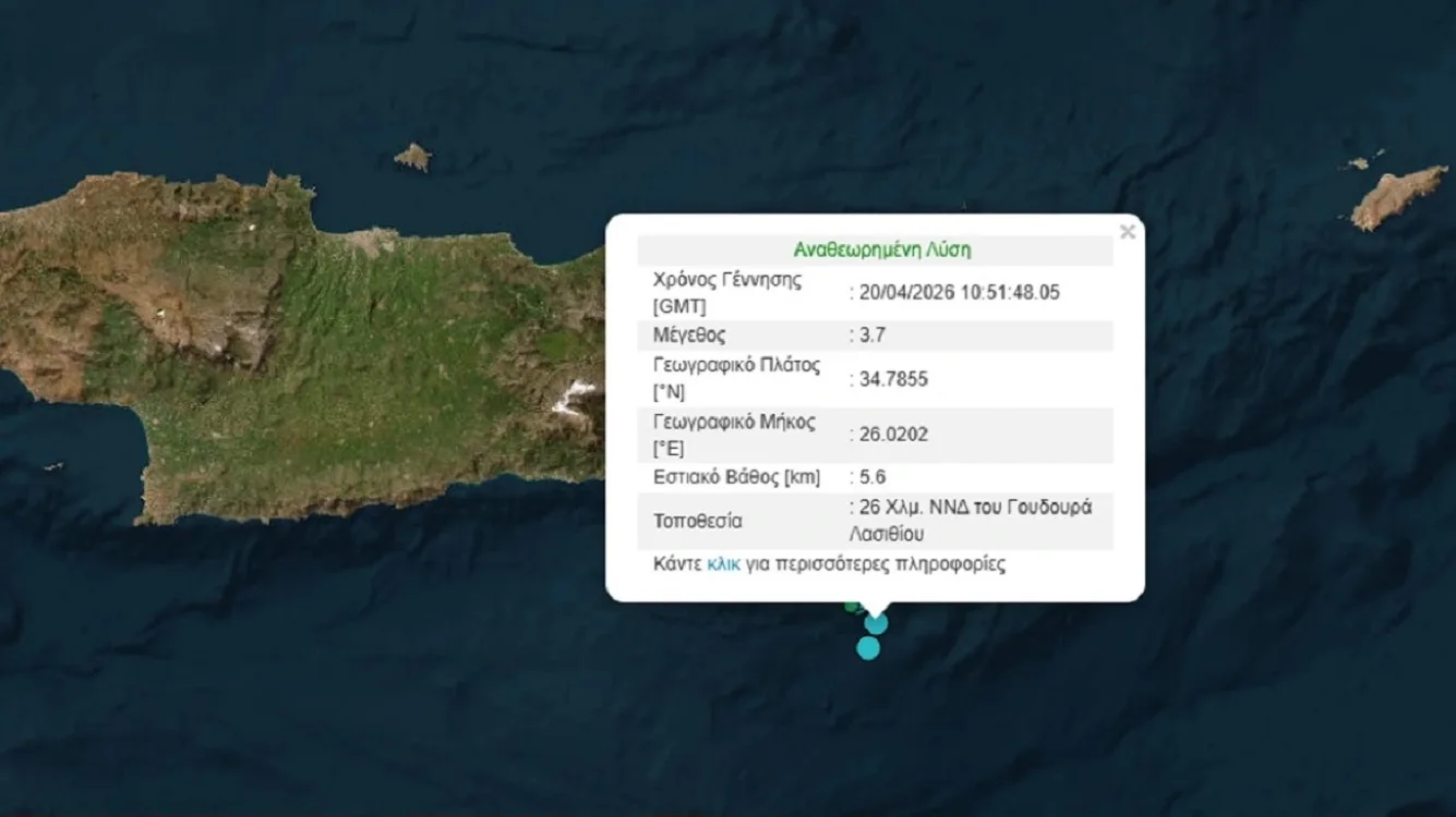 Κρήτη: Σεισμός 3,7 Ρίχτερ νότια του Γουδουρά στο Λασίθι