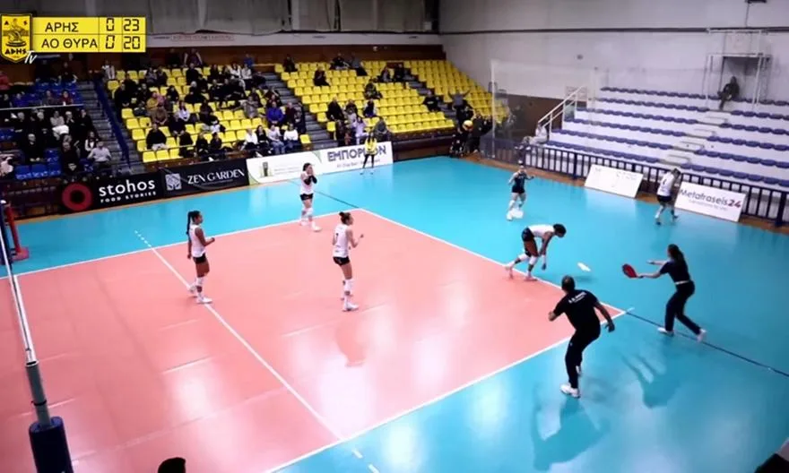 Ένα πρωτοφανές συμβάν, ευτυχώς χωρίς τραυματισμό, συνέβη στον αγώνα μεταξύ Αρη και ΑΟ Θήρας για τη 14η αγωνιστική της Volley League Γυναικών.